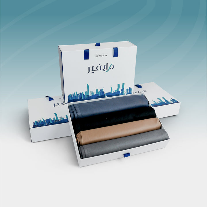 بمناسبة دخول موسم الشتاء وفرنا لكم مجموعة متكاملة من الاقمشة الشتوية، بالالوان المرغوبة في قطر, هذه المجموعه تحتوي على اللون الاسود, الازرق, الجملي و الرمادي الغامق